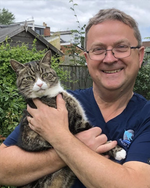 Martin qualified from Cambridge in 1986 and has devoted himself to the care of pet animals ever since, initially in Hampshire, and subsequently in Shropshire, before moving to Gloucestershire in 2019. He has always resisted the temptation to head down the road of specialisation, preferring instead to remain in the role of GP vet. What he loves about his work is the privileged opportunity to build enduring relationships with the owners and carers of pet dogs and cats, who trust him with the wellbeing of their loved ones from infancy to maturity and beyond. Martin is a lifelong supporter of Stoke City football club, while he and his family share their home with their two cats, Molly and Jonmoa.